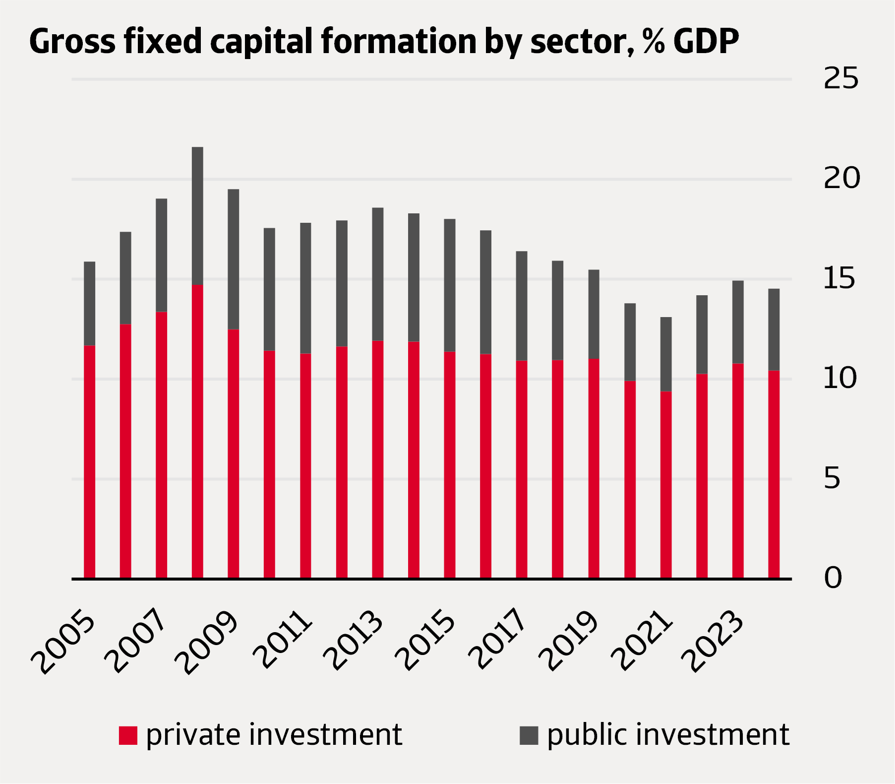 Les investissements en capital en Afrique du Sud sont faibles depuis des années. En 2024, ils ne représentaient que 14,5 % du PIB, un niveau insuffisant pour stimuler la croissance nécessaire.