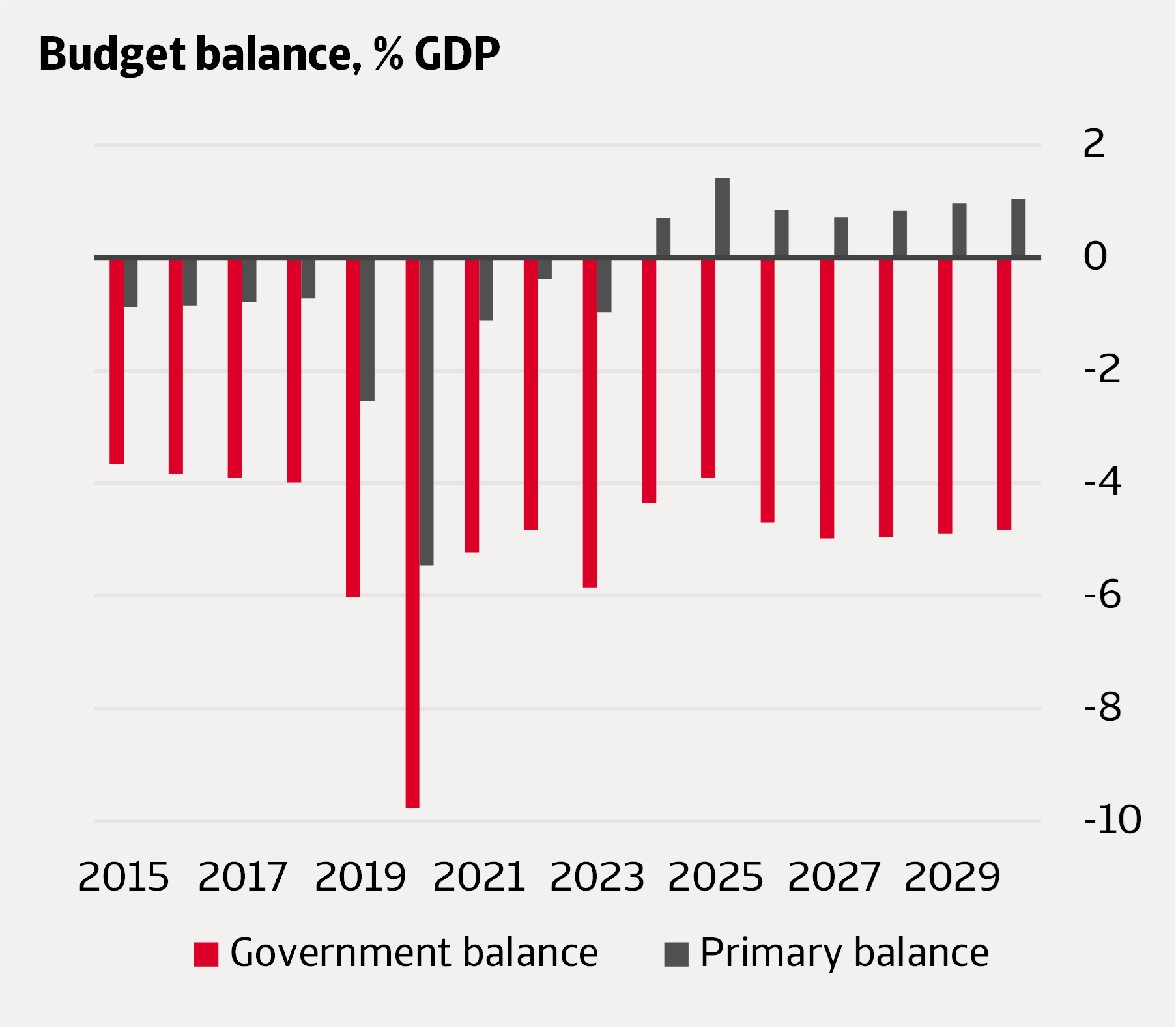 Graphique 8 Déficits budgétaires élevés malgré les excédents primaires