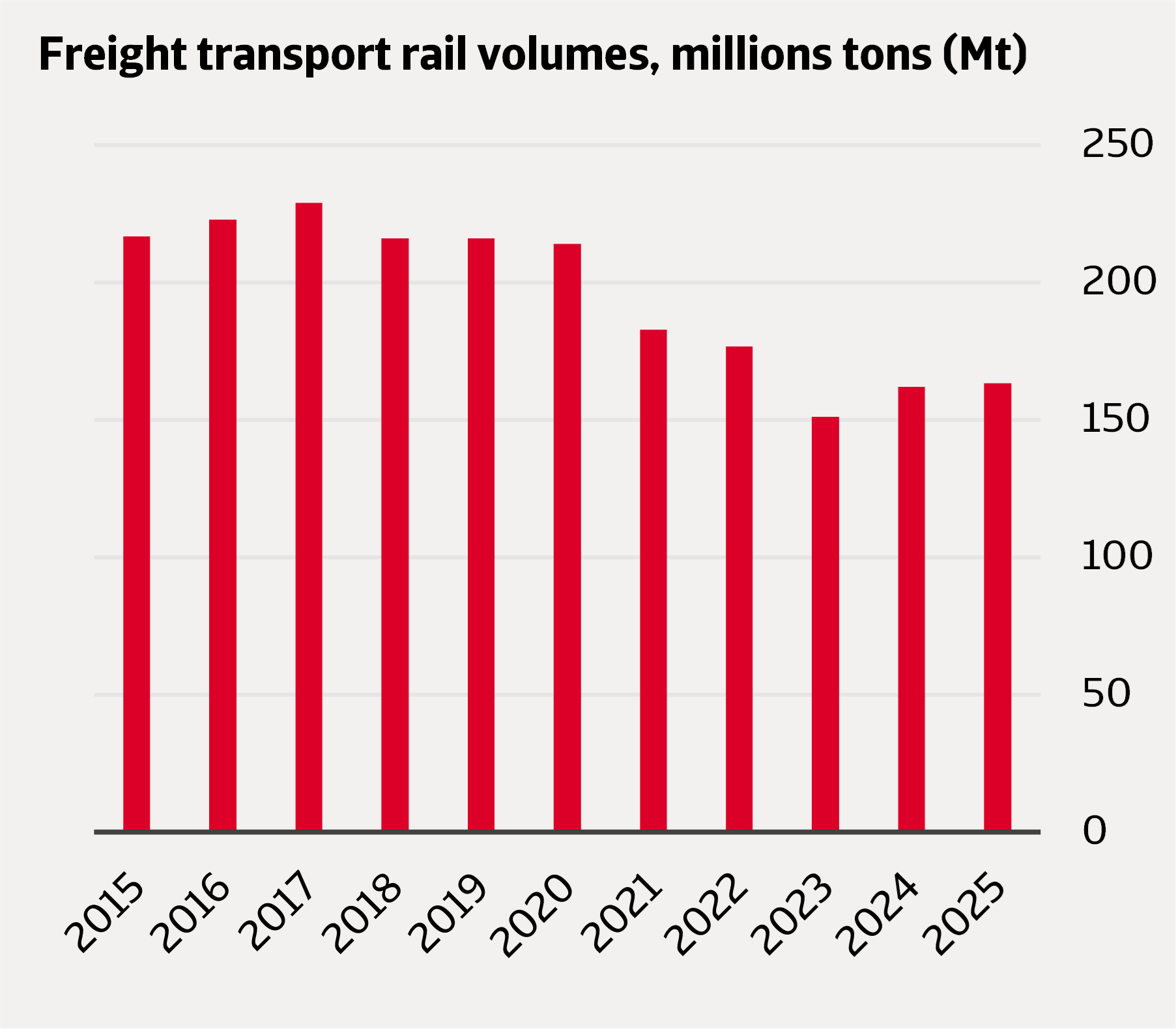 Au fil des ans, les performances du réseau ferroviaire de fret se sont fortement détériorées (graphique 3). En 2023, les volumes de fret ferroviaire avaient baissé d'un tiers par rapport à leur pic de 2017, atteignant leur niveau le plus bas depuis des années. Ce déclin est non seulement dû à un sous-investissement, mais aussi à la détérioration des conditions de sécurité, comme le vol de câbles et le vandalisme.