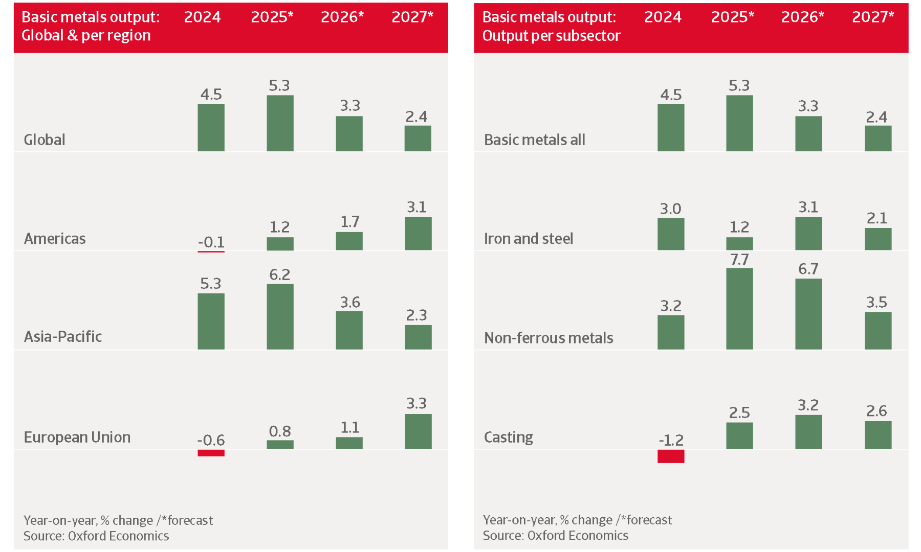 Nous anticipons une reprise progressive du secteur au second semestre 2026, à mesure que les chocs passés s’estompent et que la demande industrielle repart. En 2027, la production européenne de métaux devrait croître de 3,3 %.