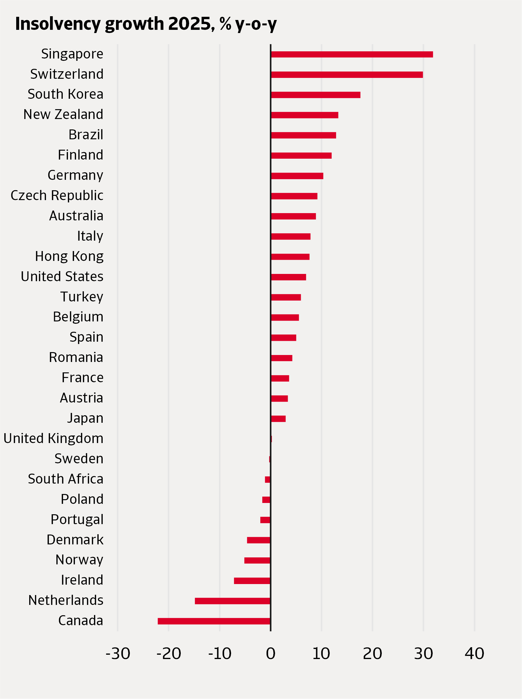 La croissance des défaillances d’entreprises a ralenti dans la plupart des pays en 2025